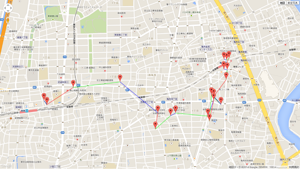 - 4.Visualizationツールを起動し、playerIDなどを入力すると、ブラウザ上でGoogleMapsが表示される。